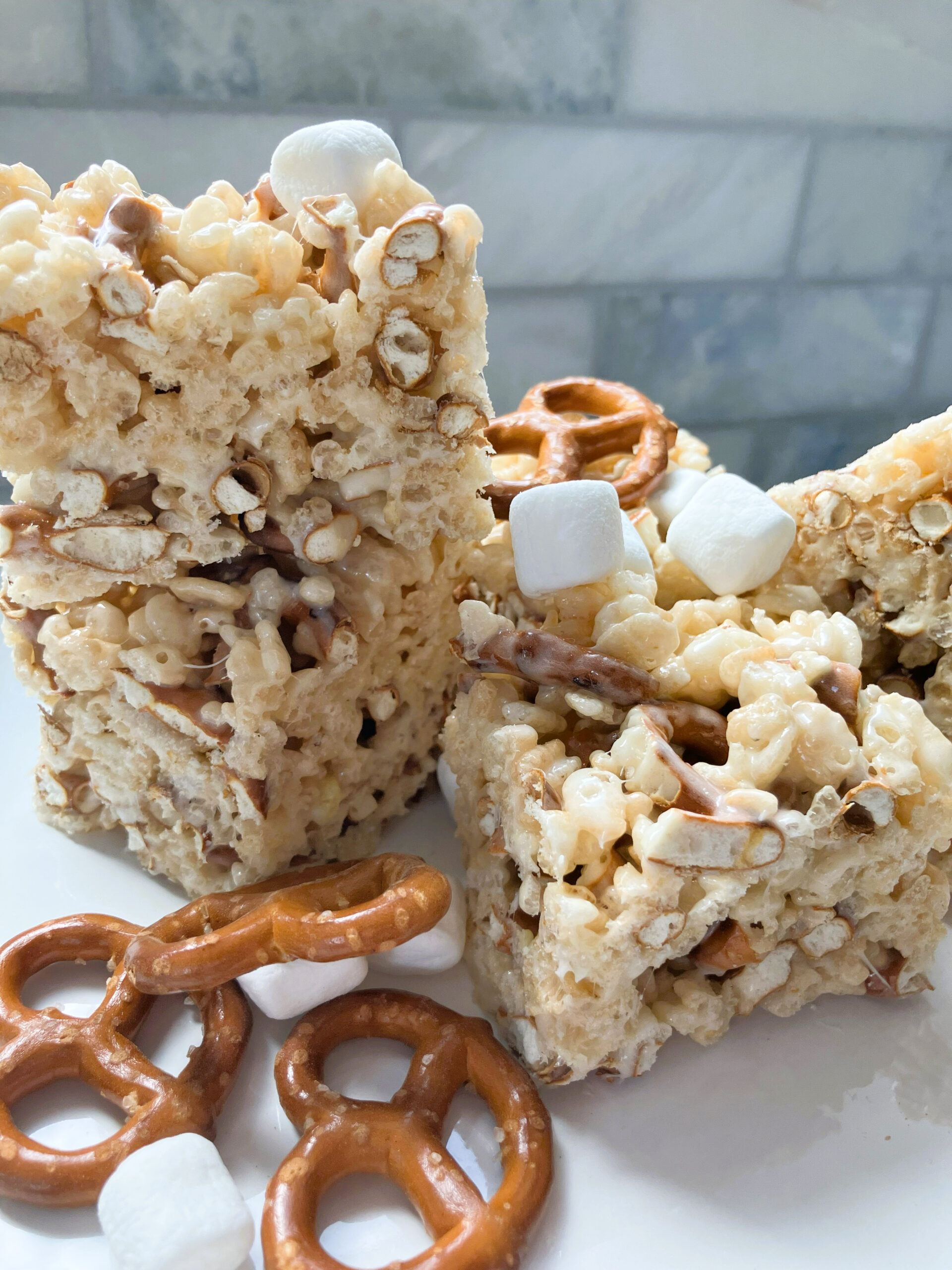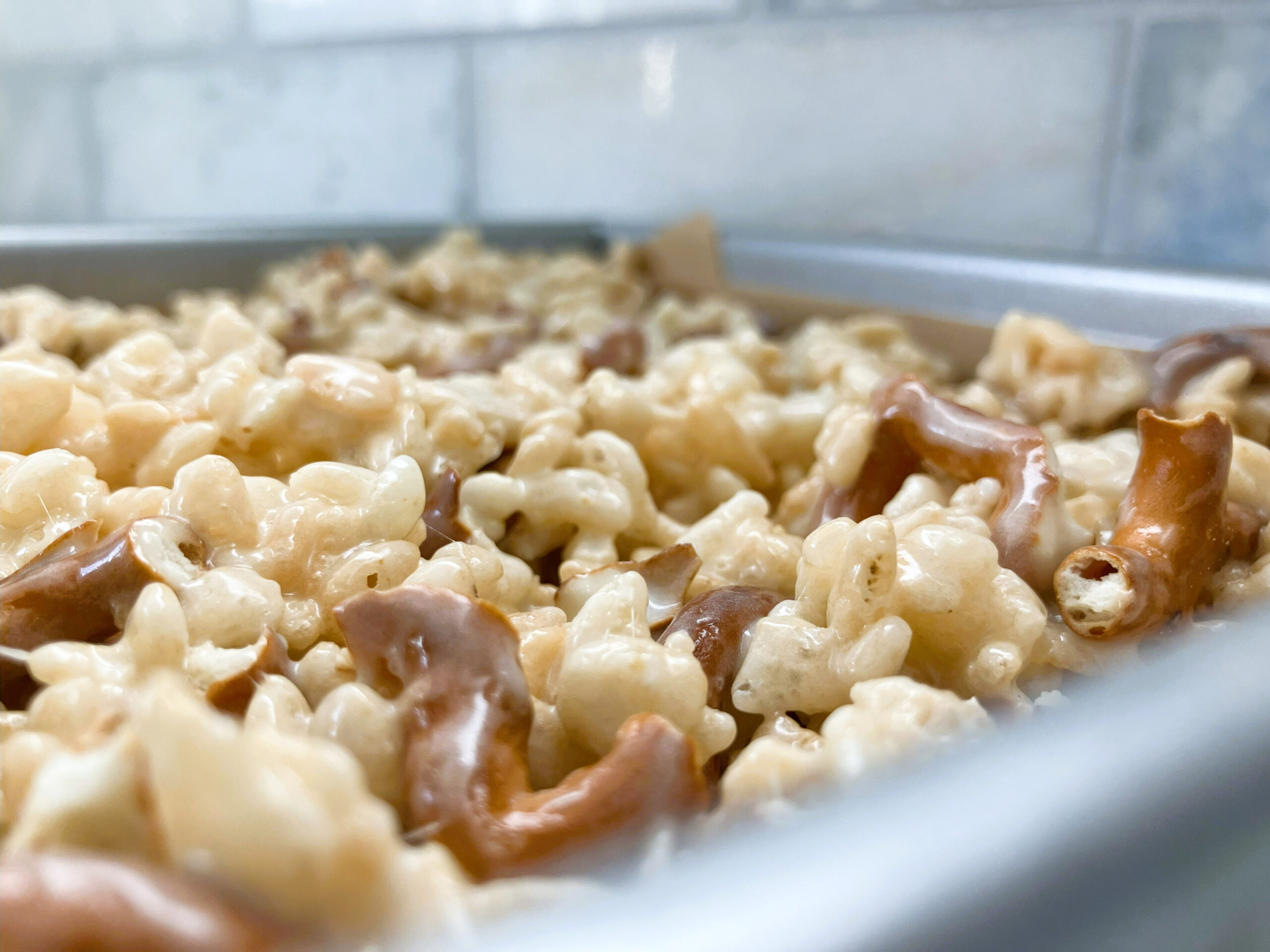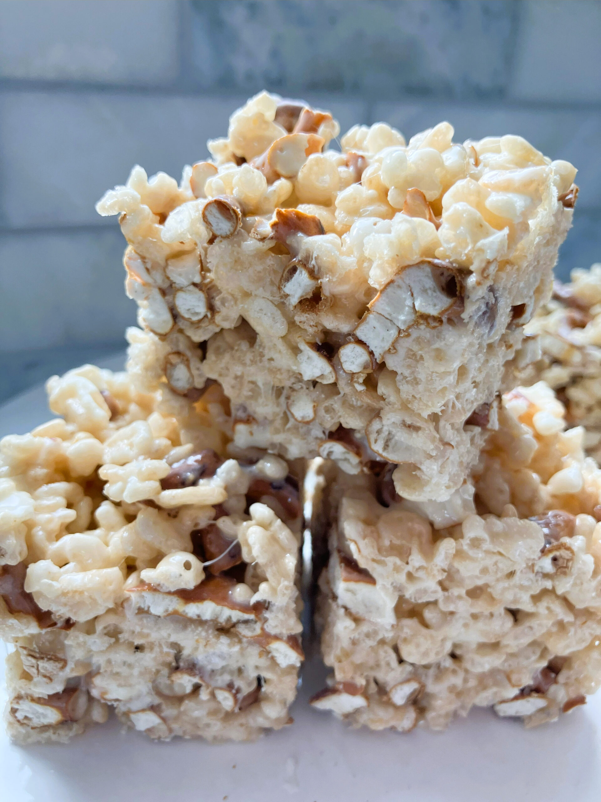 A twist on a classic childhood treat. These sweet and salty Rice Krispie treats are so good, you might not go back to the original.